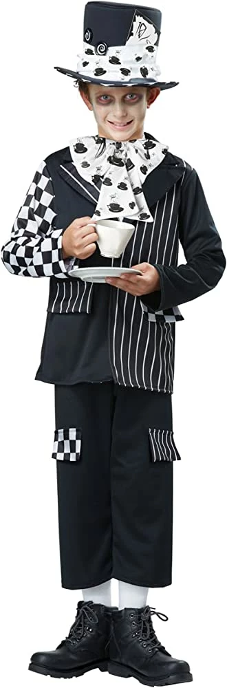 Your child can be the life of the party this Halloween in our Dark Mad Hatter costume. This professional-grade set includes a button up jacket with patterned accents, bow tie, and pants, as well as a hat with a coordinating sash and hat card. With its signature soft material, it’s sure to provide comfort and convenience during trick-or-treating.