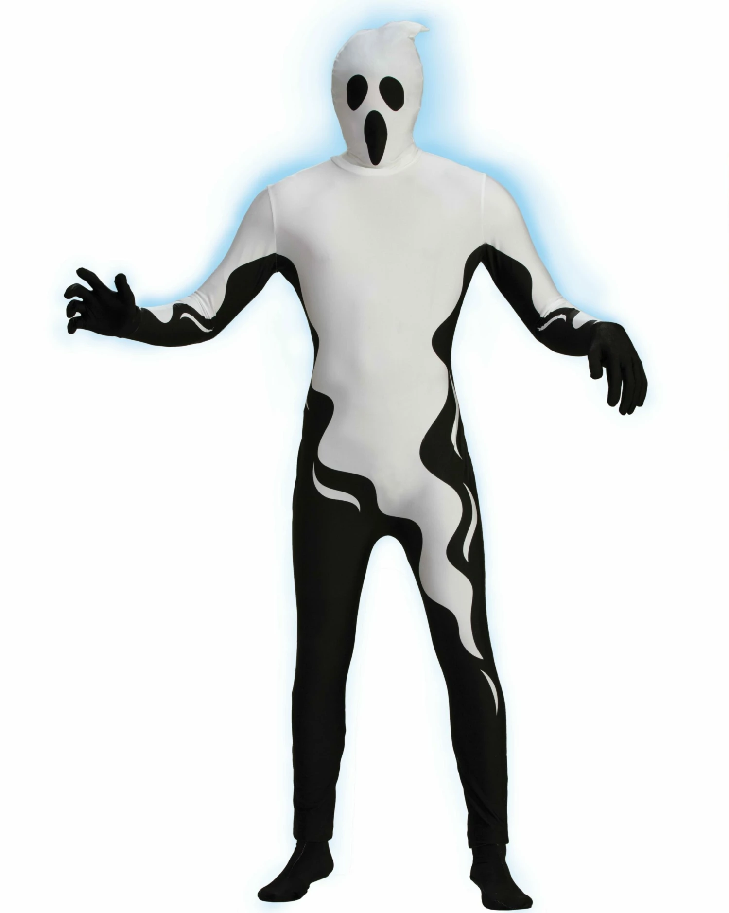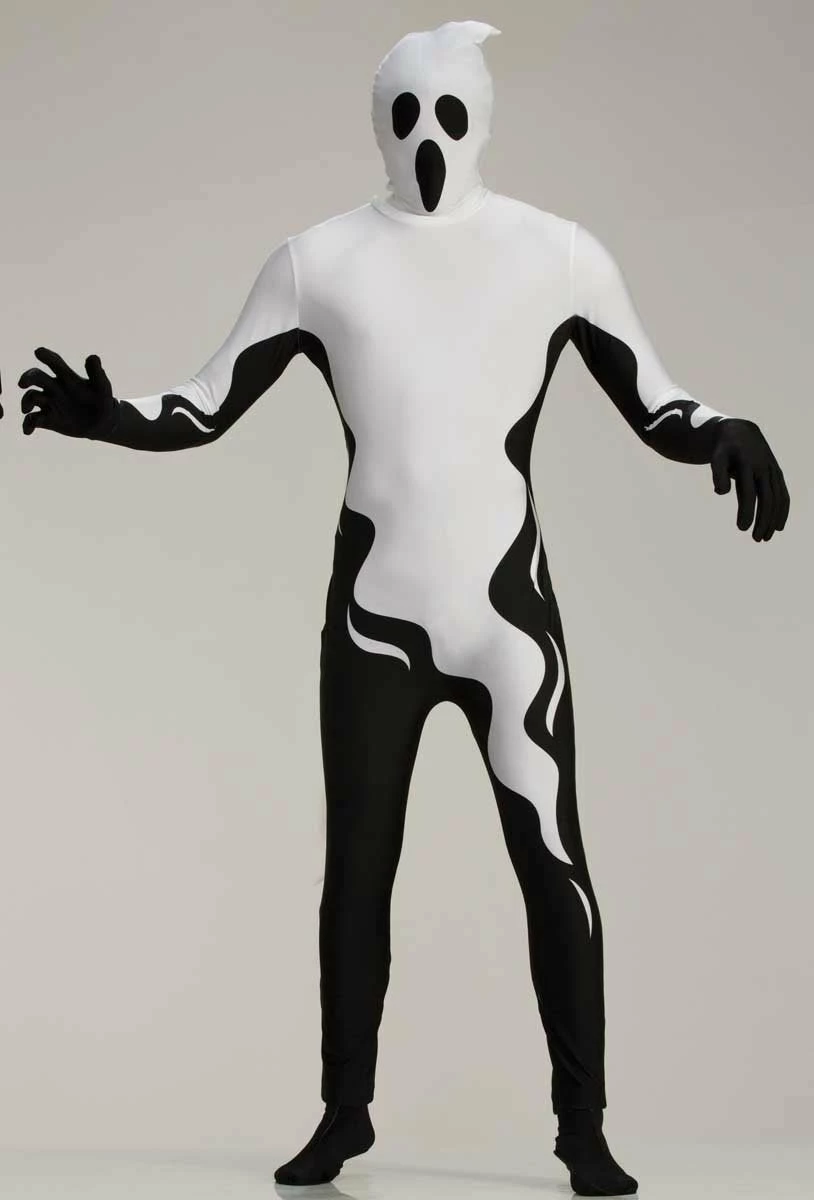 A fun, yet frightening take on a classic ghost costume. The disappearing man, floating ghost costume includes the printed jumpsuit with attached gloves and socks, and comfort see-thru hooded mask. Men’s standard fits up to chest size 42.