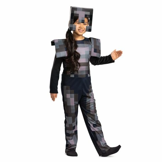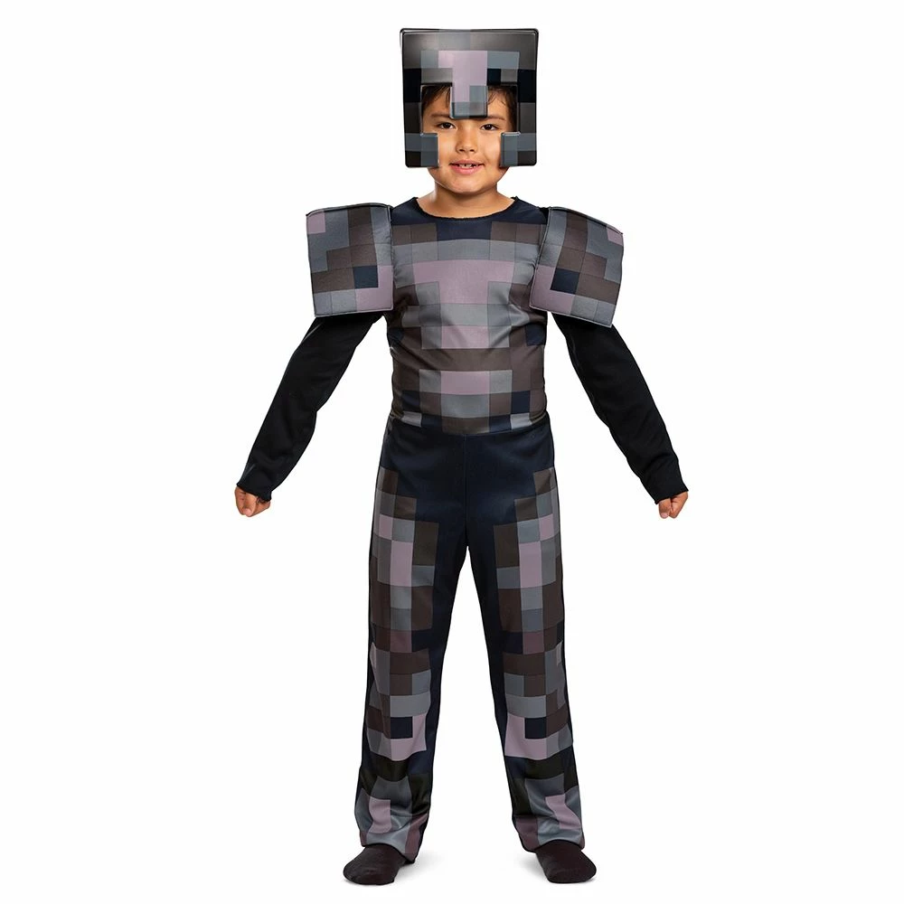 Arm your child with the strongest armor in the game: Minecraft Netherite Armor. This complete set comes with both a jumpsuit and character headpiece, perfect for protecting against Zombies and Creepers on their Minecraft adventures.