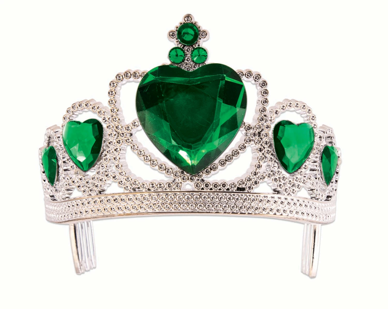 This Heart Tiara features green jewels in a heart shape and textured plastic “stones”. This one-size-fits-most Tiara comes with hair combs on the side and is ideal to pair with fairy, queen, or princess costumes for ages 14+.
