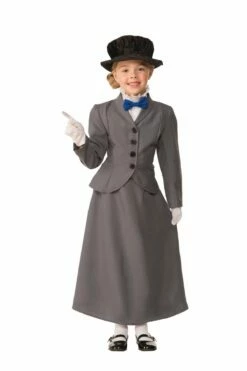 If you are looking for a very proper day care provider, the English Nanny is the way to go. The nanny costume includes the jacket, skirt, shirt front with bow tie and black hat.