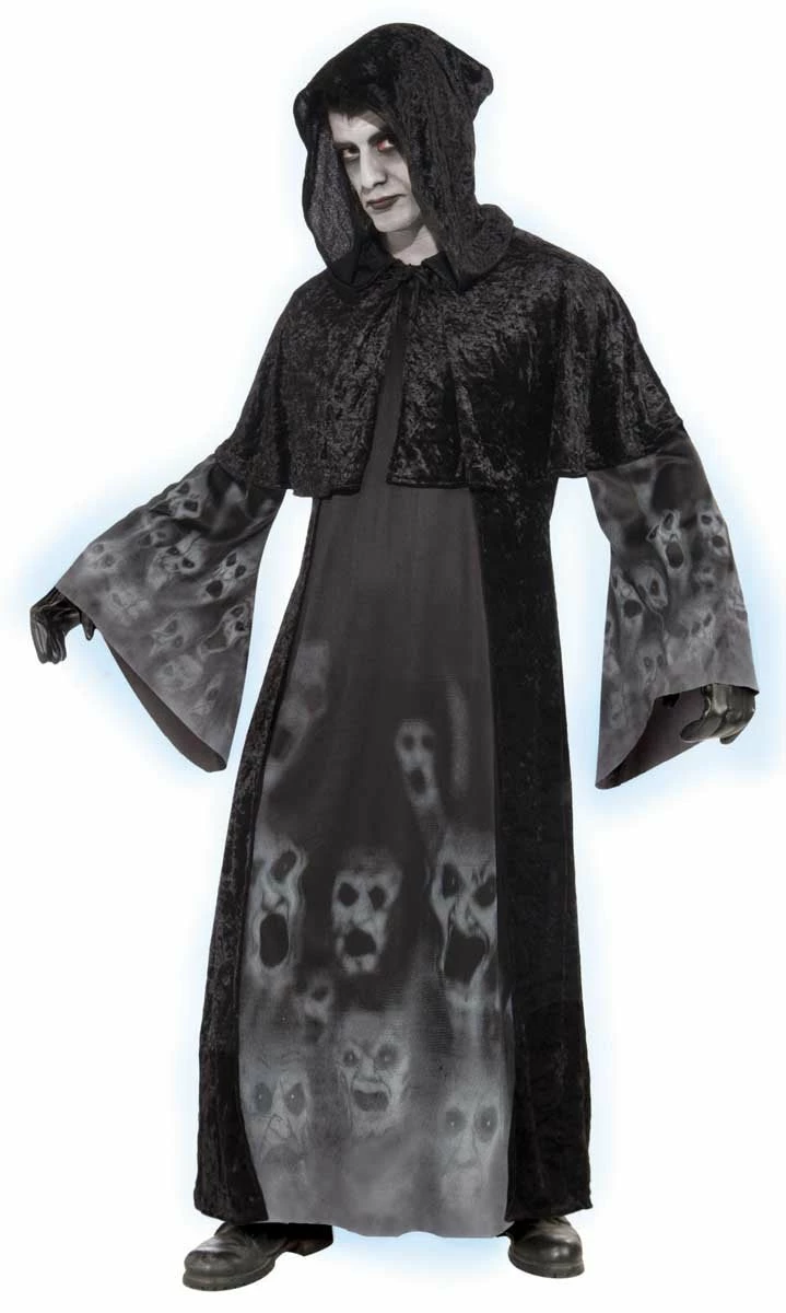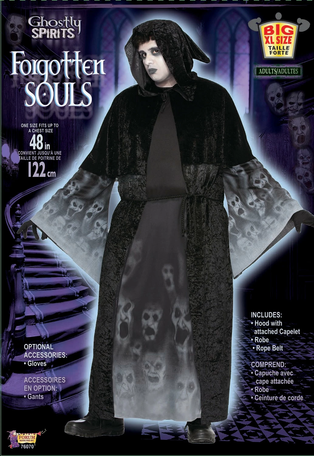 As an all powerful evil spell-caster, you are prided by the ability to harvest the souls from those who fail to complete the task of which you gave them. Included in the Forgotten Souls costume are the hood with attached capelet, spirit printed robe, and rope belt. Please see attached size chart for the spookiest fit.