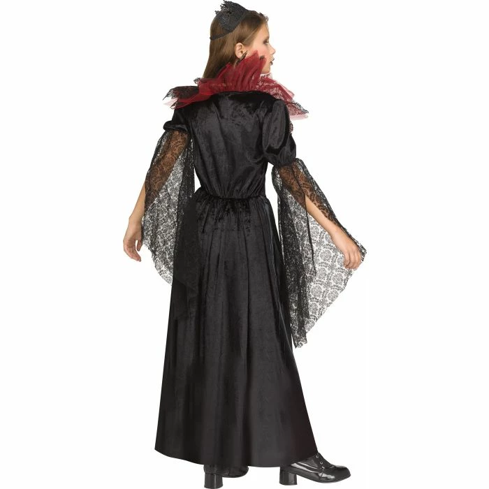 The Duchess of Darkness Child costume includes the Duchess Gown, choker with jewel and black tiara. Please see size chart