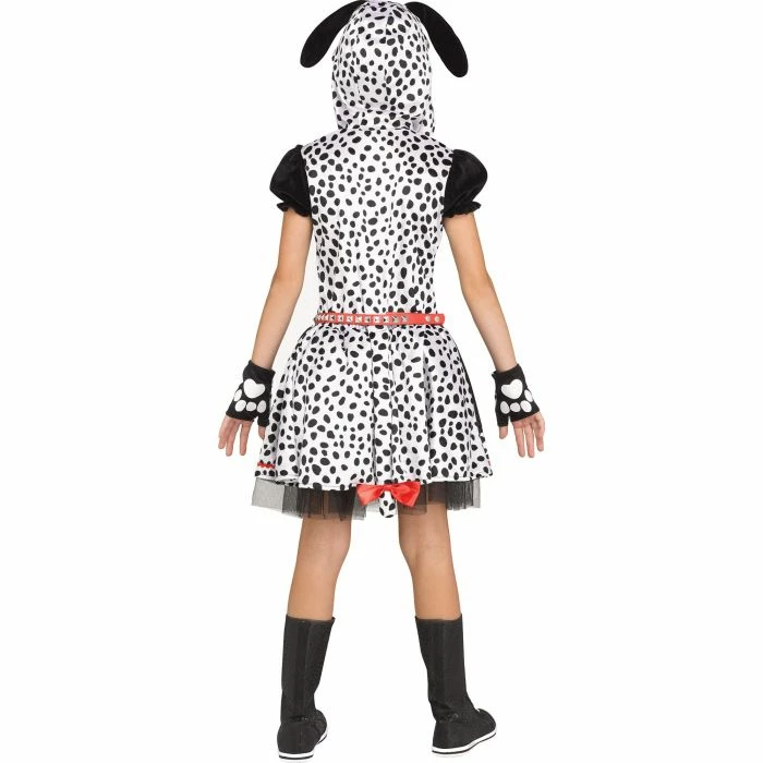 Spotted Puppy Costume Comes with Spotted Dress, puppy tail, belt, choker and fingerless gloves. Please see size chart