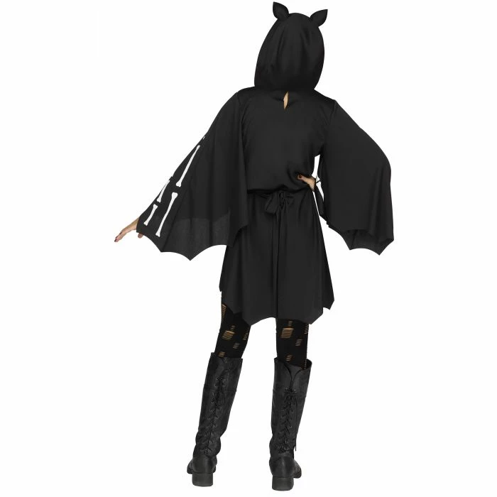 Hooded Bat Dress with flared bat wings. Please see size chart