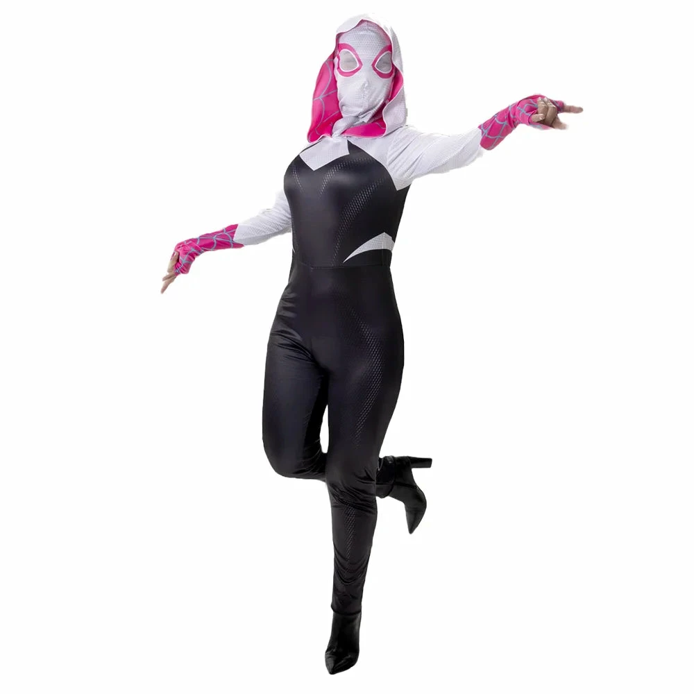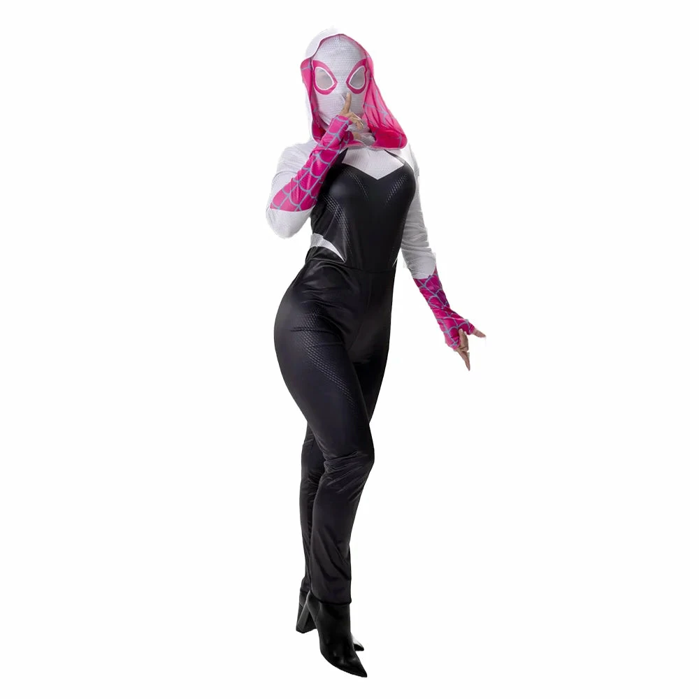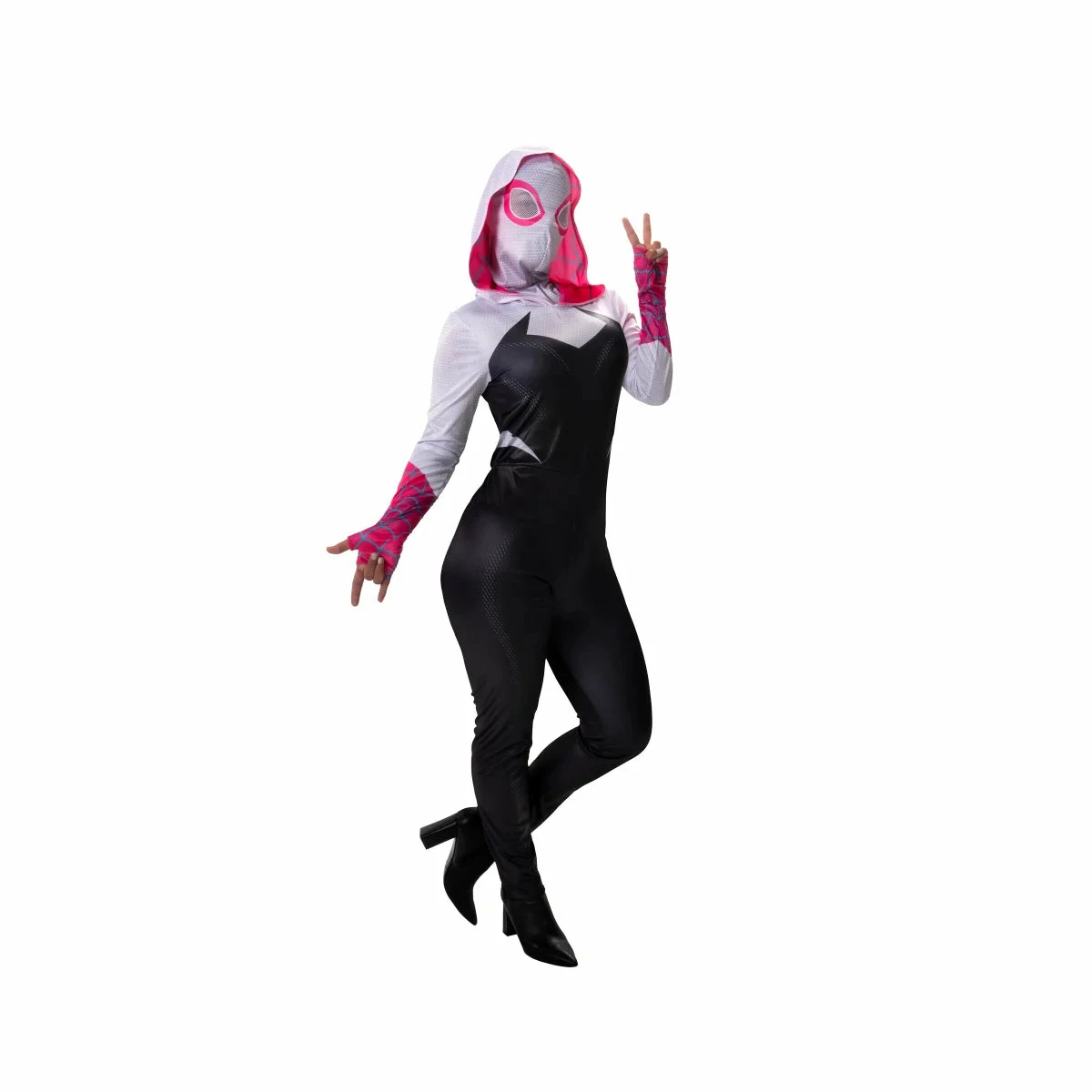 Swing into Halloween with this awesome Ghost Spider Adult Costume! It’s inspired by the Spider-Gwen comic, and comes with a vibrant printed jumpsuit and a fabric Spider-Gwen mask to hide your identity. It’s officially licensed, so you can channel your spidey senses and rock the party – just watch out for those pesky villains! #GwenStacyFTW