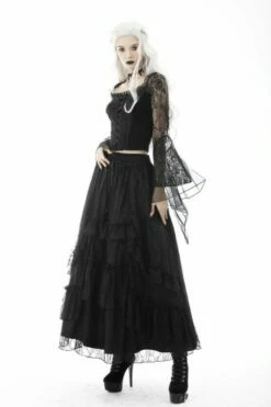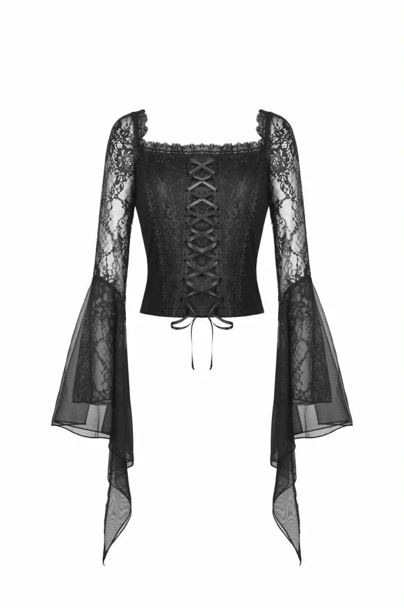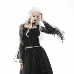 Thisblack lacey gothic shirtis stretchyand has fabulous witch sleeves. Wear for a pirate, renaissance costume, fairy, festival, or rave, or witch costume.