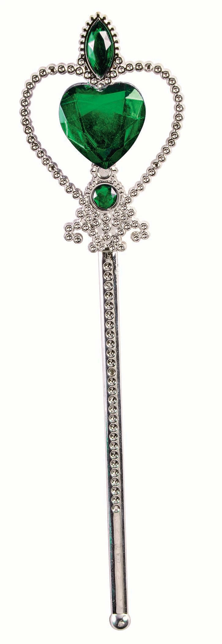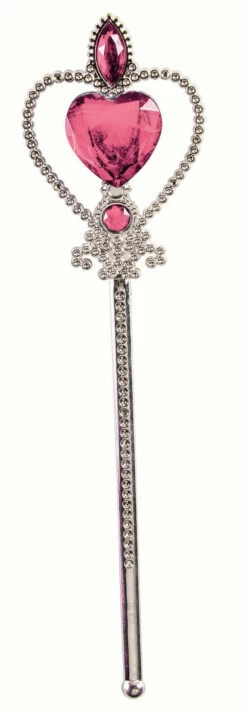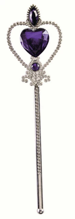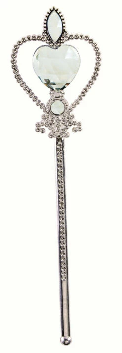 The heart wand will make every princess or queen costume complete. The wand is silver with a heart shape topper. The heart shape is your choice of colorful jewels and silver rhinestone accents. The wand is approx. 12″.