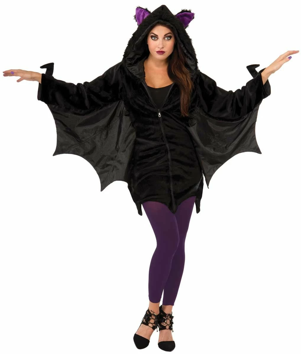 Vampire bats are named so because they feed on blood, not because they turn into vampires, although that’s not what television or films would have you believe. Dress up as an adorable bat this holiday with our Hoodie Bat Outfit. Included in packaging is the zip up hoodie with wings and attached hood with cute fluffy purple ears. Size Standard