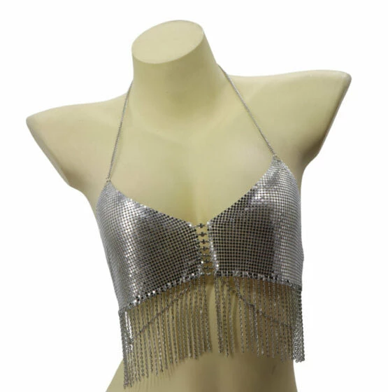 Prepare for your rave or festival with this METAL MESH FRINGE HALTER TOP! It’ll add a dazzling touch of glam amor to your look that’s sure to turn heads. Sparkly mesh fringe and a halter neckline will have you looking like a total baddie! So, go and make a statement!