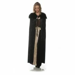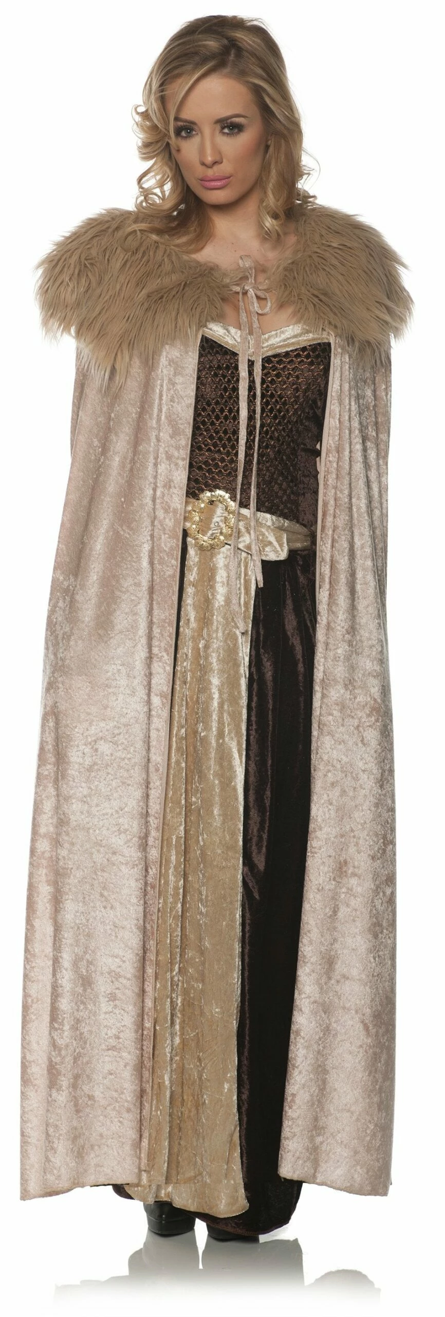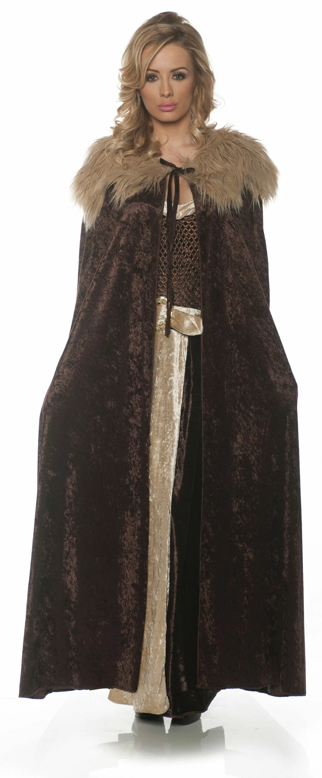A gorgeous cape for any Renaissance themed costume. Full-length fur-trimmed cape with tie closure. One size fits most.