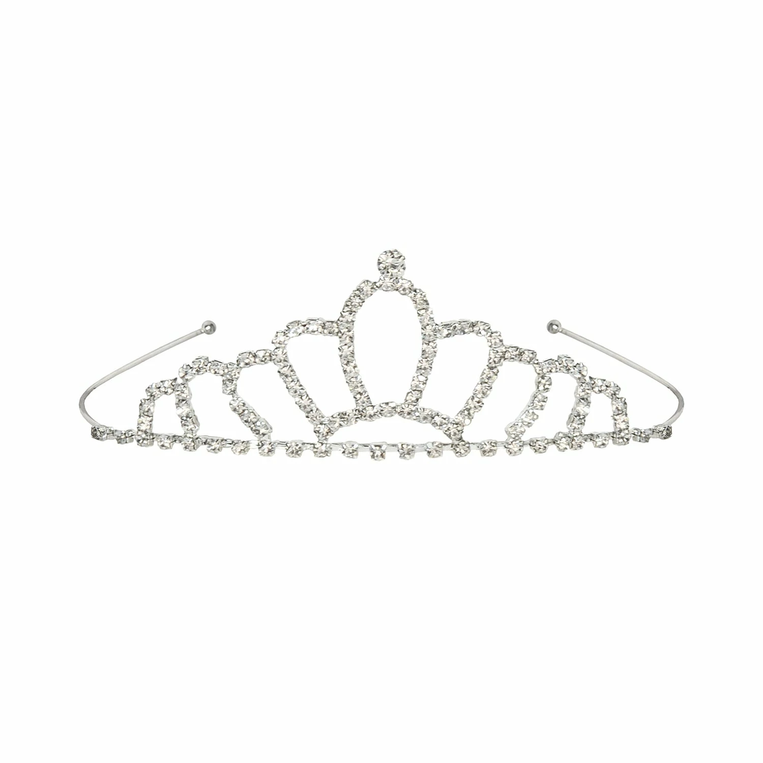 Crown her the princess with this royal rhinestone tiara. Made of metal and rhinestones.