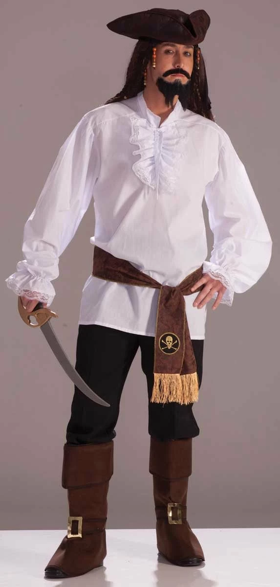 Works great for pirates, vampire costumes and more! The Ruffled White Shirt is a great addition to your costume. Shirt fits up to chest size 42.