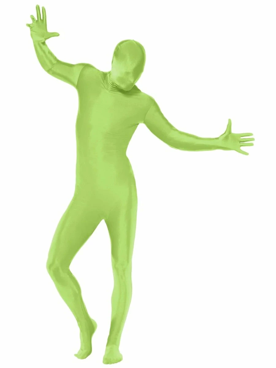Dress in the ultimate disguise with the Green Second Skin Suit! This quirky design comes with a suit, bum bag, concealed fly and under chin opening!